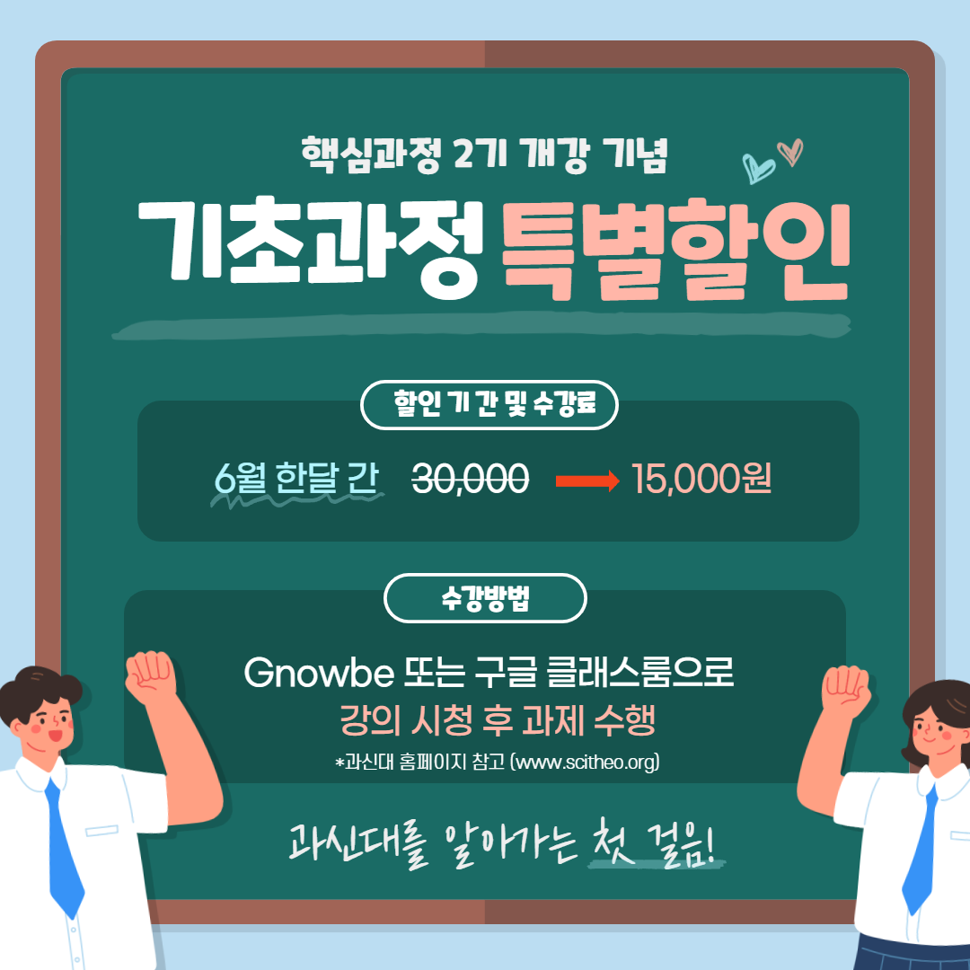 과신대의 핵심 프로그램인 <기초과정>을 6월 한달 간 50% 할인된 가격으로 제공합니다.