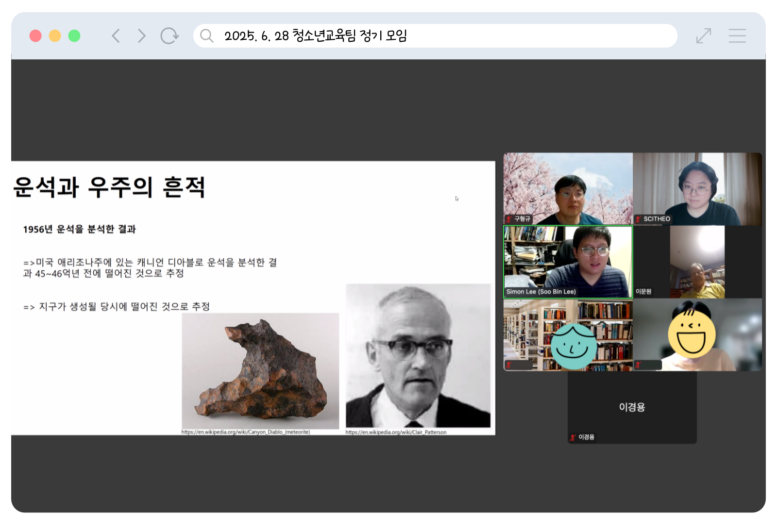 1. 청소년교육팀은 7월 26일 토요일 모입니다. 청소년들이 과학과 신앙에 대한 균형 잡힌 이해 속에서 바르게 성장할 수 있도록 돕는 일에 함께하길 원하시는 회원분들의 참여를 언제나 환영합니다.