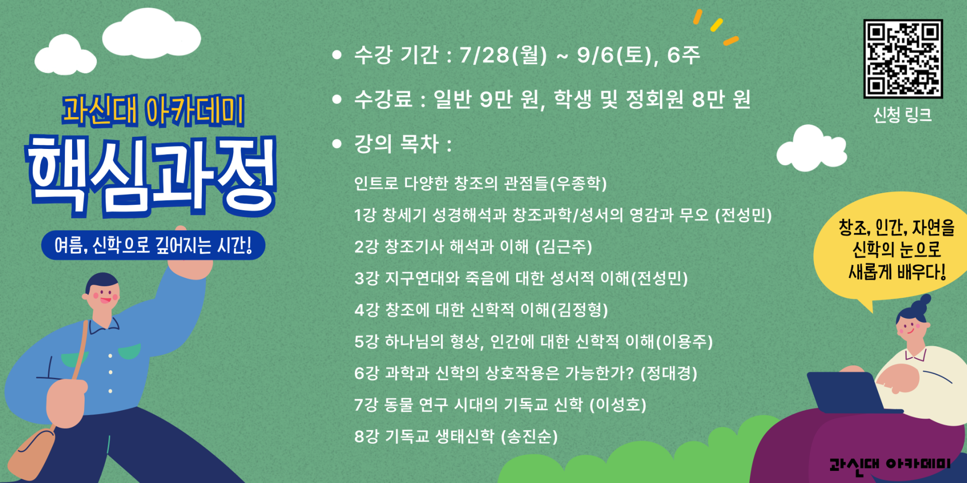 여름, 신학으로 깊어지는 시간! 과신대 핵심과정 <신학>이 7월 28일부터 6주간 진행됩니다. 성서신학, 조직신학, 현대신학까지 한 번에 배우는 기회, 지금 신청하세요!