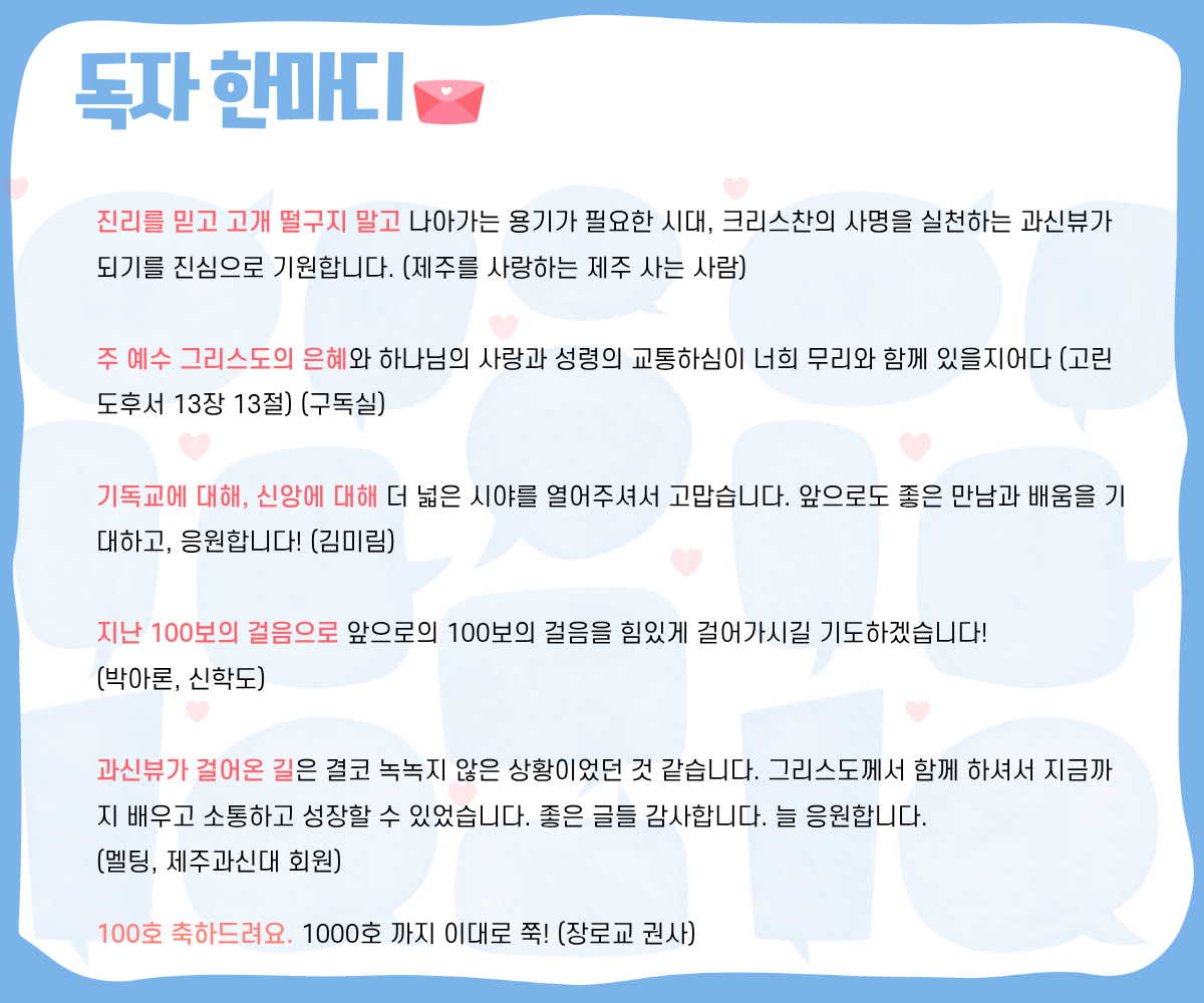 과신뷰 100호 ❝독자 한마디❞